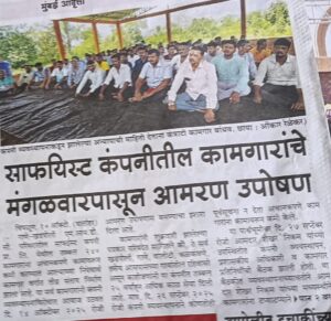 Saf Yeast company lays 240 contract workers at Chiplun Plant at Gane Khadpoli, the workers who have worked for over 25 years were told to resign by the management without intimation by the management, These contract workers have now resorted to a hunger strike